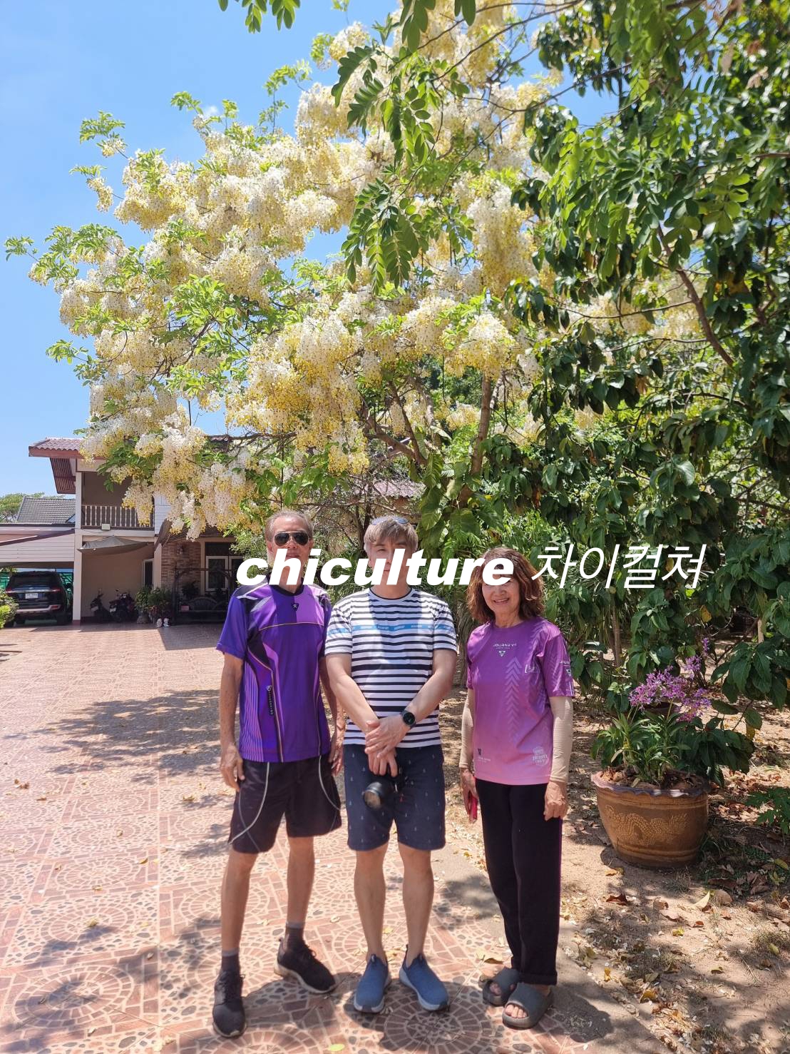 하필 딱 만개를 해서 아름다움이 절정에 다달았더군요. 저 꽃나무가 지금 이시즌에 태국에서 흔히 볼 수 있는 노란색꽃나무와 같은 품종이라고 하더군요. 원래는 혼자 따라 들어왔는데, 어르신의 태국어를 제가 알아 들을 수가 없어서 차에서 기다리고 있던 태국친구를 데리고 와 통역을 통해 이야기를 나누었습니다.