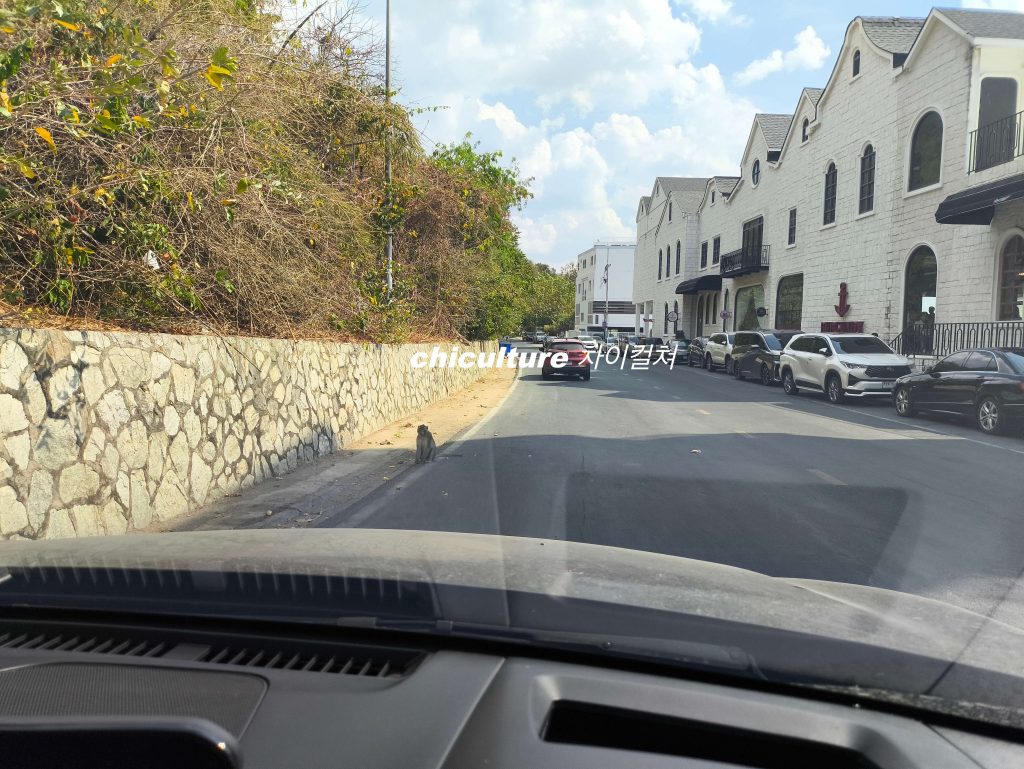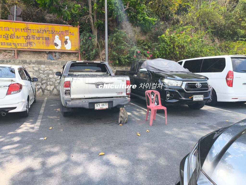 태국에서는 저런 곳에 주차했다가 혹시 원숭이가 내 차 아래에는 없는지 혹은 주행중 저렇게 원숭이를 칠 일은 없는지를 주의하면서 운전을 해야 합니다. 한국에서는 쉽게 할 수 없는 경험이죠. 저는 지금도 한국야생에 원숭이가 있는지 없는지 모르겠습니다.